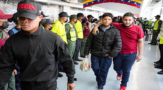 Funcionarios de organismos policiales y de inteligencia recibieron a los migrantes en el terminal aéreo, junto a la presidenta de la Gran Misión Vuelta a la Patria, Camilla Fabri, quien es esposa del exministro Álex Saab, colaborador cercano del presidente Nicolás Maduro.