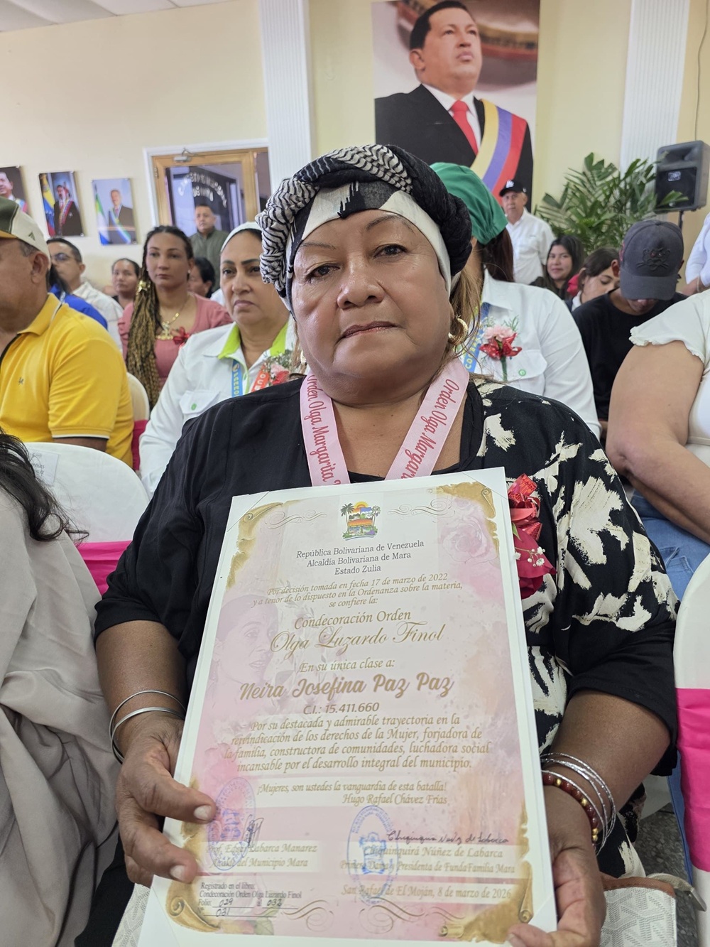 La imposición de esta distinción rinde tributo a la memoria de Olga Luzardo Finol, nacida en Paraguaipoa en 1916, quien desde muy joven inició su camino en la organización de los primeros sindicatos petroleros y la lucha por los derechos de la clase obrera en el Zulia. «Como periodista y activista pionera, Luzardo fue una de las principales impulsoras del voto femenino en Venezuela, convirtiéndose en un símbolo de resistencia que abarca un siglo de historia. Con la entrega de esta orden a las 16 mujeres de Marenses, en el marco del Día Internacional de la Mujer, el municipio no solo reconoce su trayectoria y aporte al desarrollo local, sino que mantiene vivo el legado de una mujer cuya visión fue siempre la emancipación y la justicia social como destino inevitable del país».