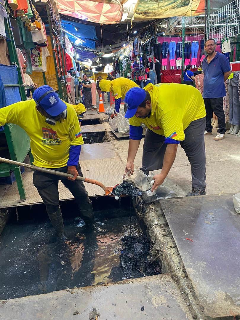 Durante las labores, se abarcaron más de 200 metros de drenaje, interviniendo 87 tapas de drenaje de 1.20 x 1.80 metros para retirar restos de basura, grasa y otros sedimentos.