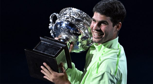 Carlos Alcaraz logró el título del Abierto de Australia tras vencer en la final al serbio Novak Djokovic por 2-6, 6-2, 6-3 y 7-5, y se convirtió, con 22 años y 272 días, en el primero en lograr los cuatro títulos del Grand Slam.