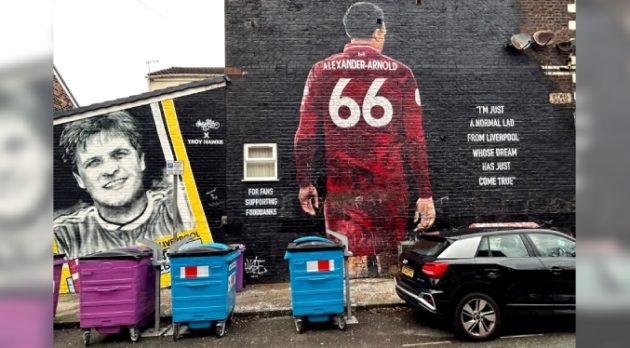 Un mural de Trent Alexander-Arnold fue vandalizado antes de su regreso a Liverpool para jugar con el Real Madrid en la Liga de Campeones. El otrora ídolo en el estadio Anfield fue posteriormente abucheado y foco de las burlas de los hinchas locales.
