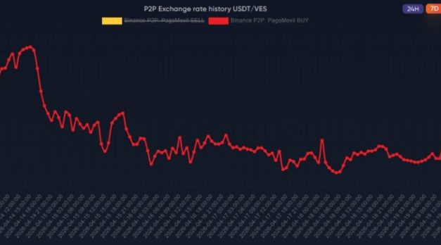 De acuerdo con datos de mercado, la estabilidad del precio del USDT por debajo de los 620 bolívares en los mercados entre pares (P2P) en la última semana —que se refleja en la siguiente gráfica—, junto con el avance progresivo de la tasa oficial del dólar estadounidense en Venezuela, ha neutralizado casi por completo el beneficio de los llamados «bicicleteros».