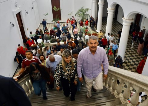“Estamos aquí en esta Plaza histórica, que honra al padre de la patria, el libertador Simón Bolívar, para ingresar, pero sobre todo para abrir las puertas de este Palacio de gobierno y que se convierta en la casa del pueblo zuliano. Con esa profunda emoción de cambiar las cosas, de atender a nuestro pueblo, de resolver sus problemas, con la carga histórica de Bolívar, Urdaneta, Ana María Campos, Nigales, el comandante Hugo Chávez”, dijo el gobernador.