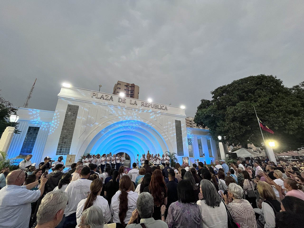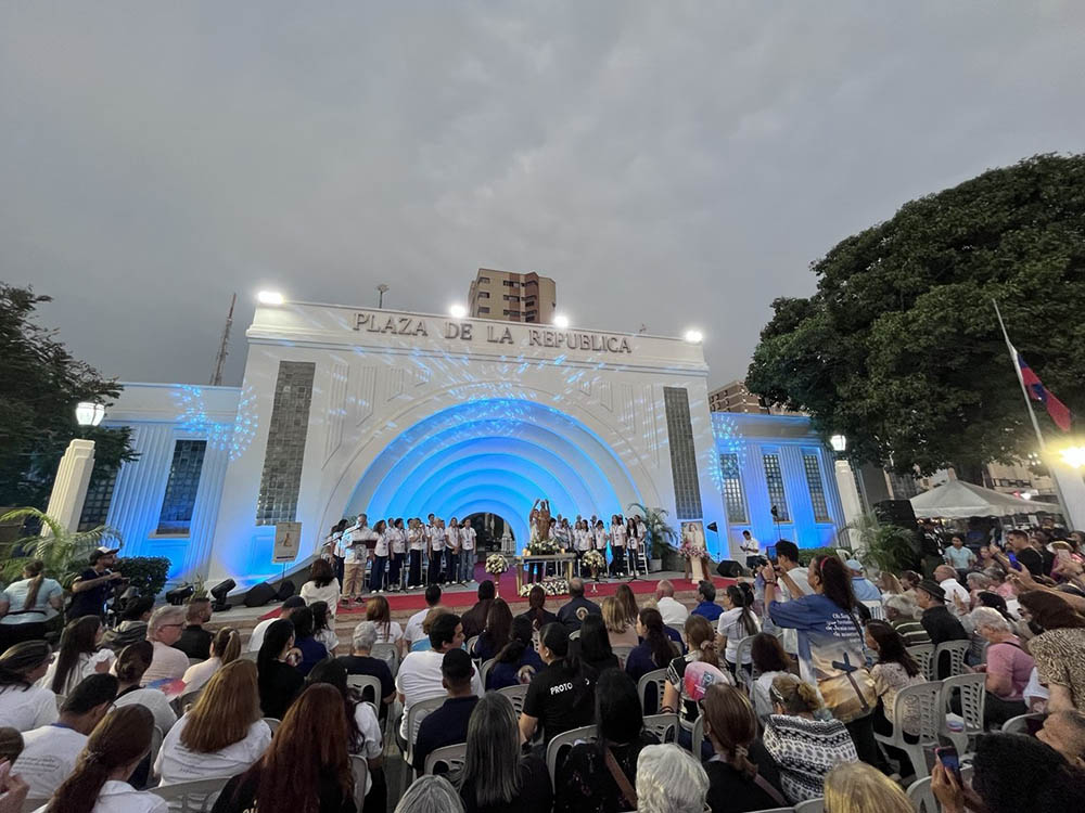 La plaza de la República fue el epicentro del evento religioso que estuvo lleno de alegría, fe y esperanza, además de la presencia de la imagen sagrada de la advocación mariana y de María Gracia Bianchini, hija de María Esperanza Medrano de Bianchini, quien fue la primera en recibir el mensaje de Dios a través de la Virgen en una finca, cerca de Cúa, estado Miranda.