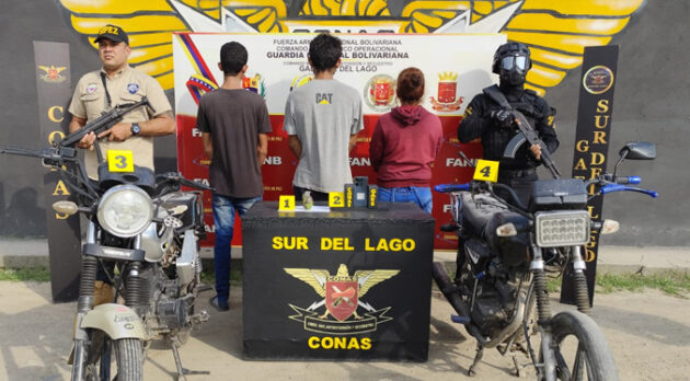 El arresto se produjo en el sector Orillas del Periférico de Santa Bárbara, municipio Colón, los capturados quienes se movilizaban en dos motocicletas quedaron identificados como Ender Elias Mendoza Alvarado, Jean Carlos González Montiel y Reneisi Chiquinquirá Pírela Villasmil. Los cuales quedaron bajo custodia, puestos a disposición de la Fiscalía 16 del Ministerio Público.