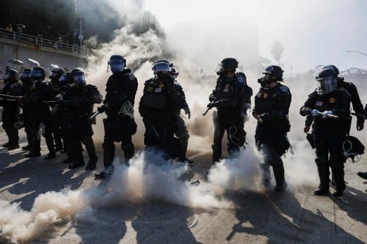 El clima este lunes en Los Ángeles permanece tenso. El centro de la ciudad fue declarado como zona de «asamblea ilegal» por la Policía angelina en un aviso emitido por la madrugada en redes sociales.