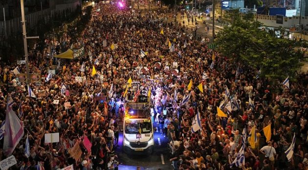 Cientos de miles de manifestantes, según una estimación del Foro de las Familias de Rehenes, se congregaron la noche de este domingo en Tel Aviv para exigir un acuerdo de alto el fuego con Hamás que ponga en libertad al medio centenar de cautivos que permanecen en Gaza.