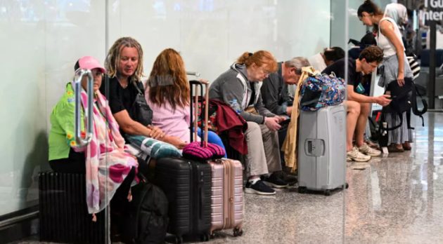El cansancio y la frustración se reflejaban en el rostro de numerosos turistas, que arrastraban pesadas maletas.