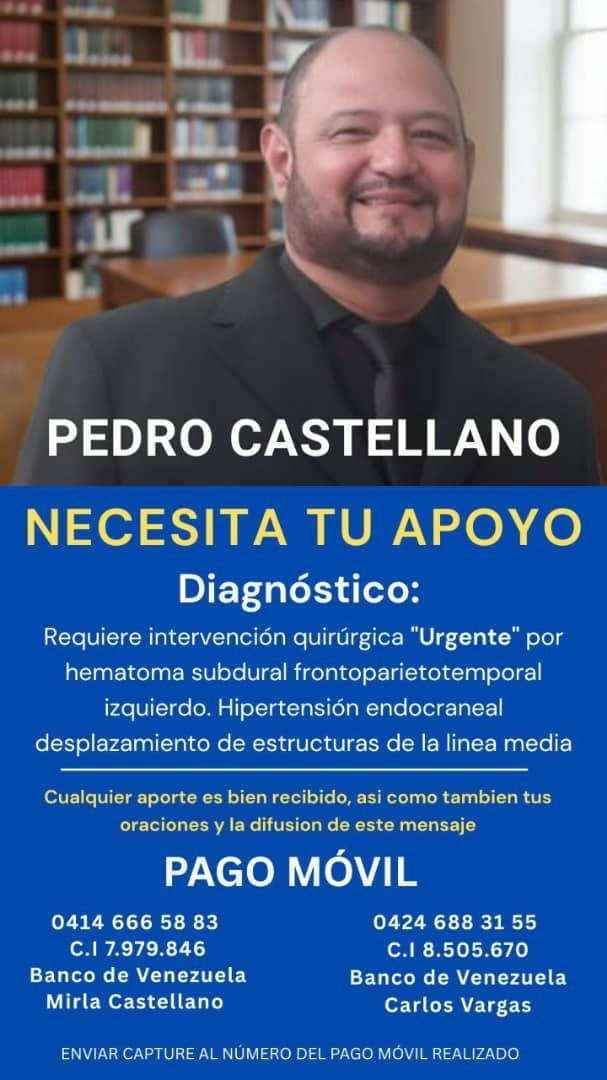 Familiares y amigos apelan a la solidaridad de todo aquel que pueda en este momento realizar un aporte para reestablecer la salud de Pedro Castellano, el cual se encuentra recluido en el Hospital Coromoto.