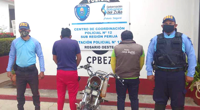 Los uniformados adscritos al Centro de Coordinación Policial Perijá inspeccionaban personas y vehículos en el sector Noriega Trigo, parroquia Rosario, cuando vieron a los señalados en una motocicleta Haojin patotera negra, quienes se desplazaban a alta velocidad, por lo que procedieron a darles la voz de alto, pero los individuos hicieron caso omiso emprendiendo veloz huida.