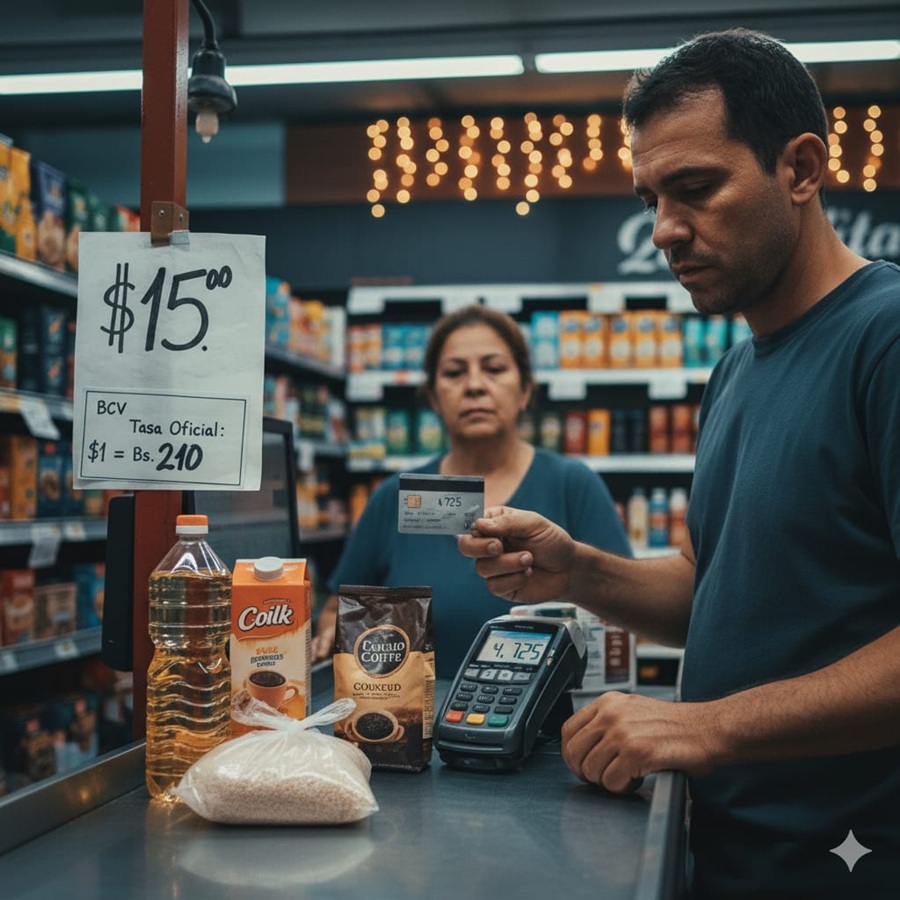 Había cobrado su «salario integral» y sabía que era una carrera de velocidad contra la depreciación. Su misión: comprar los víveres esenciales. La tasa oficial del Banco Central de Venezuela (BCV) marcaba el dólar a Bs. 210. Una quimera, lo sabía.