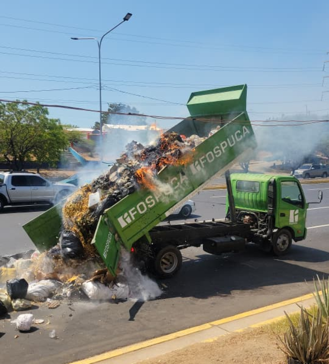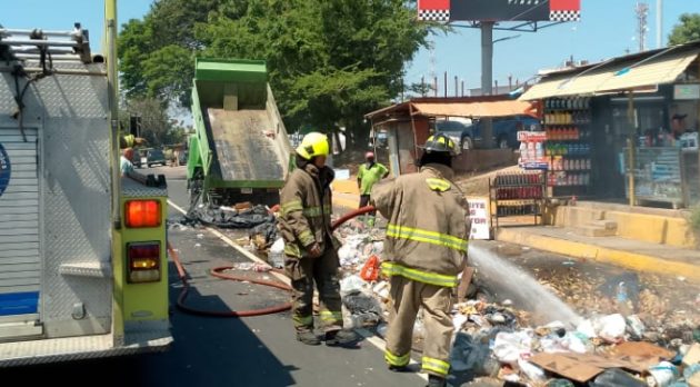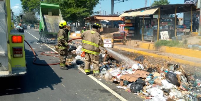 Cuerpo de Bomberos de Maracaibo sofoca incendio y salva camión de aseo urbano en la C-1