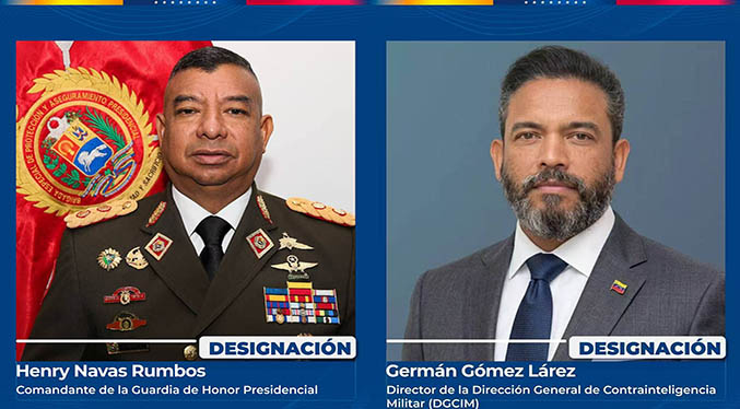 La presidenta encargada de Venezuela, Delcy Rodríguez, designó este miércoles al general Henry Navas Rumbos como nuevo comandante de la Guardia de Honor Presidencial (GHP) y a Germán Gómez Lárez en la Dirección General de Contrainteligencia Militar (DGCIM).