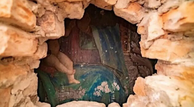 La pintura fue descubierta inicialmente en labores de restauración de la cripta en 2004, cuando los expertos encontraron que quedó protegida en una cavidad tras un muro de mampostería en el brazo norte de la sala.