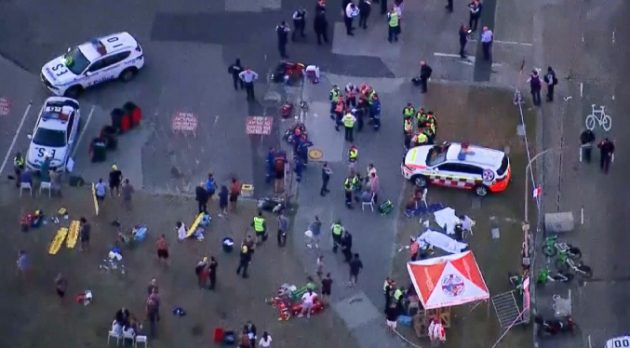 La declaración policial preliminar presume que luego sacaron del vehículo tres armas de fuego, junto con tres bombas caseras y una bomba «con forma de pelota de tenis«, y se dirigieron hacia la multitud.