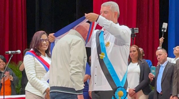 El gobernador del estado Zulia, Luis Caldera, colocó este viernes la banda a Di Martino, quien afirmó que «esta ciudad retoma el camino del progreso, del bienestar y del esplendor al que está destinada».