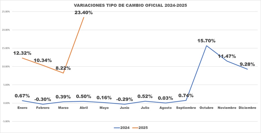 El ajuste cambiario que se viene concretando desde el pasado octubre de 2024, va a concluir abril en su punto más alto, por ahora, cuando el precio del dólar llegó hasta los 86,11 bolívares por unidad este viernes 25, luego de subir 23,40 % en lo que va de este mes, una variación que apunta a ser el mayor incremento mensual desde octubre pasado.