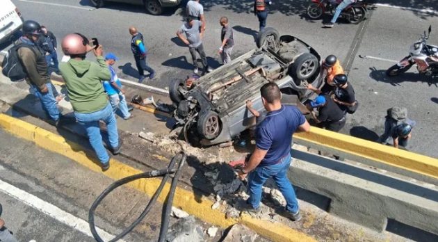 Los hechos se dieron específicamente a la altura del distribuidor de Altamira, en el municipio Chacao. De acuerdo al reportero de sucesos, Román Camacho, tres personas iban a bordo del carro y perdieron el control, indica la nota de La Calle.