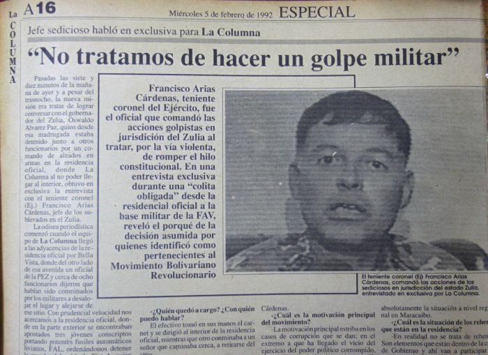No me lo dijeron sino que fui testigo en primera línea en el momento que cumplía la cobertura por el diario LA COLUMNA, cuando, además, en el vehículo de mi propiedad el jefe de la asonada militar en el estado Zulia, teniente coronel (Ej.) Francisco Arias Cárdenas, conducía la unidad hasta la base militar «Gral. Rafael Urdaneta» donde me regresó el Fiat Mirafiori-131.