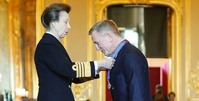 El actor británico Daniel Craig, que encarnó a James Bond en la gran pantalla durante 15 años, recibió el martes la misma condecoración que el agente 007, de manos de la princesa Ana, hermana del rey Carlos III.