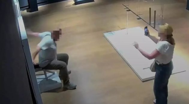 El jueves el museo publicó un video de sus cámaras de seguridad en las que aparece un turista sentado en esta obra de arte mientras un una mujer le saca fotos. Al sentarse, la silla se desploma.