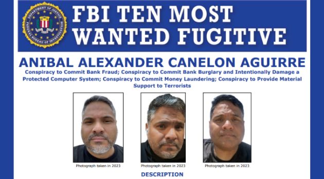 De acuerdo a un afiche compartido, el individuo que entró entre los Diez Fugitivos Más Buscados es acusado de conspirar con numerosos equipos para robar millones de dólares de instituciones financieras en apoyo a la banda transnacional Tren de Aragua. A Canelón Aguirre también se le conoce por los alías «Prometeo» y «El Ingeniero«.