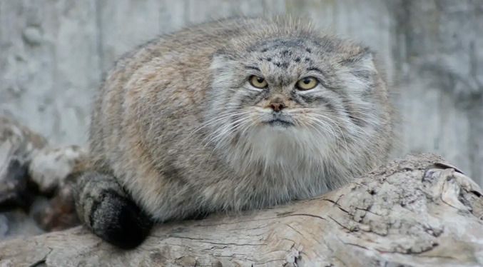 El gato de Pallas, también conocido como manul, tiene el tamaño de un gato doméstico. No obstante, tiene tanto pelo que parece mucho más grande. También tiene las patas más cortas, los ojos más redondos y el hocico más aplanado, lo cual le da un aspecto inicialmente simpático. Sin embargo, todo esto contrasta con la caída de su frente, que le da un aspecto de ceño fruncido, como si estuviese siempre enfadado.