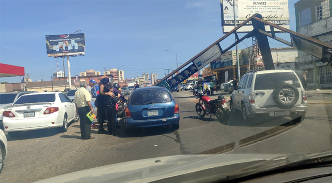 En un incidente ocurrido en la  Avenida Delicias con Calle 84 en Maracaibo, cuando una estructura de un semáforo cayó sobre un vehículo que era conducido por una mujer.