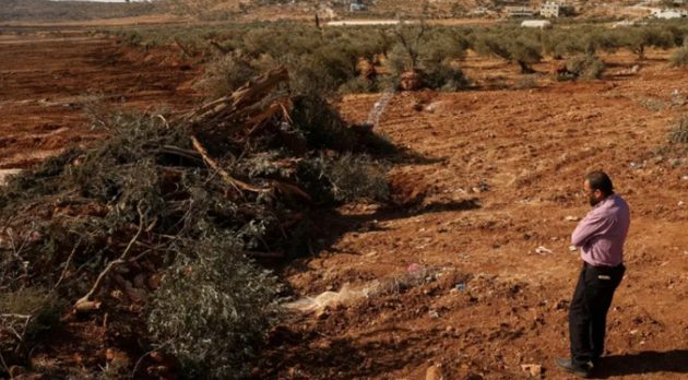 Excavadoras israelíes arrancaron cientos de árboles en el pueblo de Al Mughayyir, en Cisjordania, en presencia del ejército israelí, constataron este domingo periodistas de AFP.