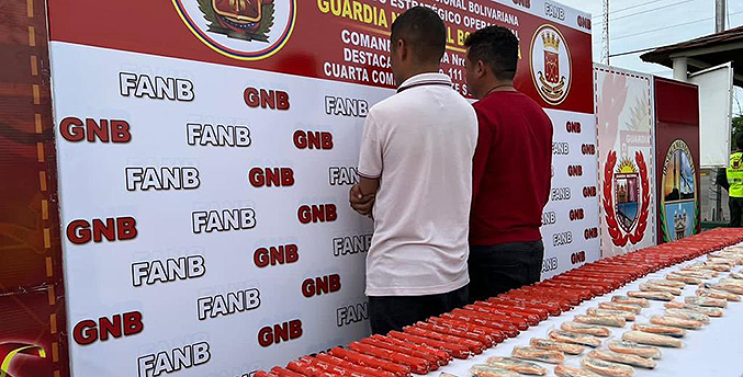 El Comandante Estratégico Operacional de la Fuerza Armada Nacional Bolivariana (FANB), Domingo Hernández Lárez, informó que efectivos de la Guardia Nacional Bolivariana detuvieron a dos delincuentes con 100 barras de explosivo en el municipio Guajira del estado Zulia.
