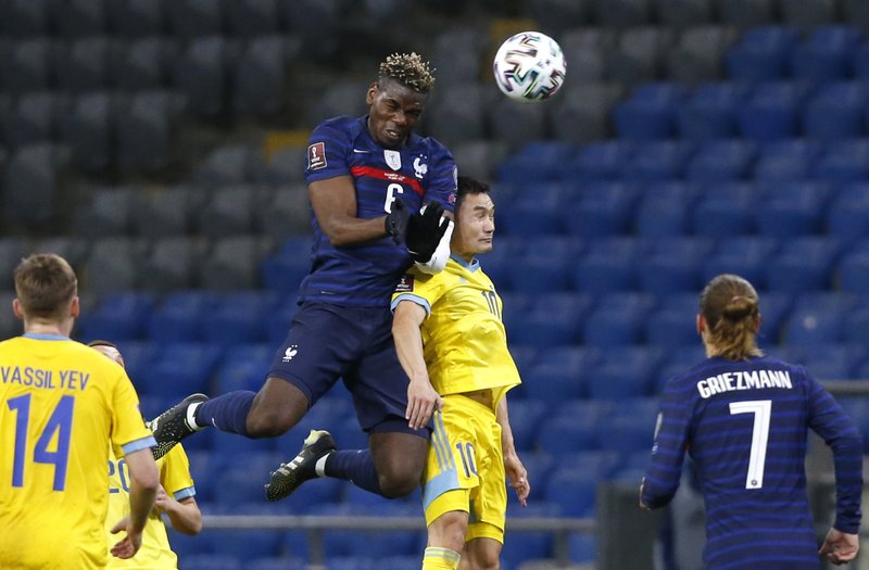 Francia solo realizó dos tiros al arco rival en el primer tiempo, pero el equipo generó más oportunidades después del medio tiempo, y el guardameta kazajo Alexandr Mokin detuvo brillantemente los intentos de Dembélé y Mbappé, quien ingresó el partido después de una lesión de rodilla izquierda de Martial.
