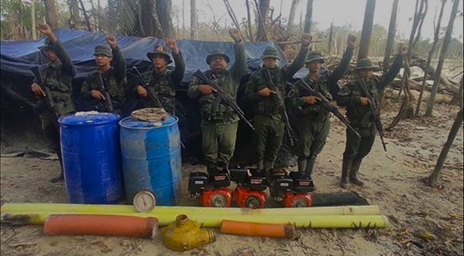 El funcionario militar indicó, en una publicación en Instagram, que en el campamento de minería ilegal, ubicado en un sector del municipio Atabapo, fueron incautados 400 litros de gasolina, 200 litros de gasoil, tres motores hidráulicos, así como una planta eléctrica.