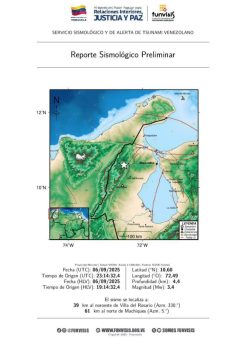Este 6 de septiembre a las siete y 14 de la noche, la Fundación Venezolana de Investigaciones Sismológicas (Funvisis) reportó un sismo que se localizó a 39 kilómetros al noroeste de la Villa del Rosario, y a 61 km al norte de Machiques, estado Zulia.