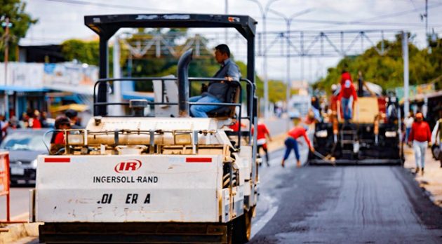 El gobernador Caldera resumió que ya suman 18 frentes de colocación de asfalto en toda la región zuliana, entre las que cuentan grandes carreteras de carácter nacional, que se ejecutan con el Ministerio del Poder Popular para el Transporte Terrestre, como la Machiques-Colón, la zona del río Palmar, vía Paila Negra, Sinamaica-Paraguaipoa, entre otras, y las del Plan Zulia en el Oeste, en la que se integran 92 comunas.