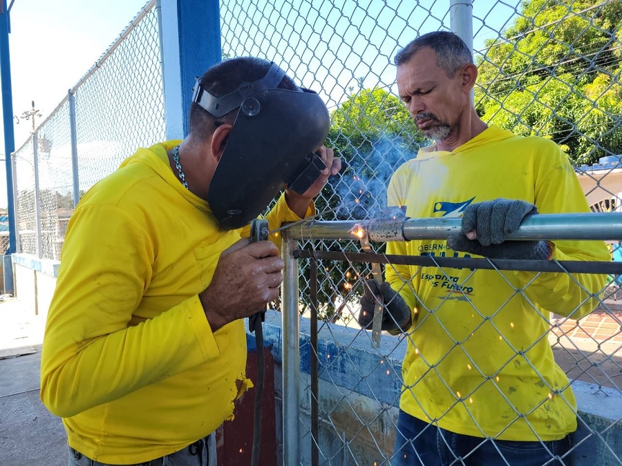 La obra contempla la reparación de cerca perimetral, construcción de portón, tensar la malla de ciclón y pintura de aluminio en malla de ciclón. Además, incluye pintura de caucho en paredes de cerca de bloques, reparación de piso con mortero de cemento, adecuación del sistema eléctrico y colocación de luminarias de 300 W.