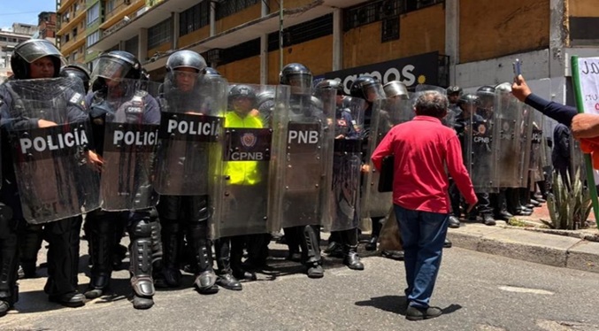 “Durante la cobertura de la marcha este #9Abr, al menos 10 periodistas y trabajadores de la prensa fueron golpeados, rociados con gas pimienta y robados por efectivos de la PNB que impidieron el avance de la movilización en reclamo de salarios y pensiones dignas”, informó el SNTP en su cuenta de X.
