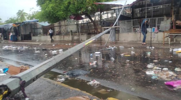 Transeúntes del centro de Maracaibo reportaron un poste caído en la avenida Libertador, (calle 100), ubicada en el casco central. La situación se repitió en La Limpia y el norte de la ciudad.
