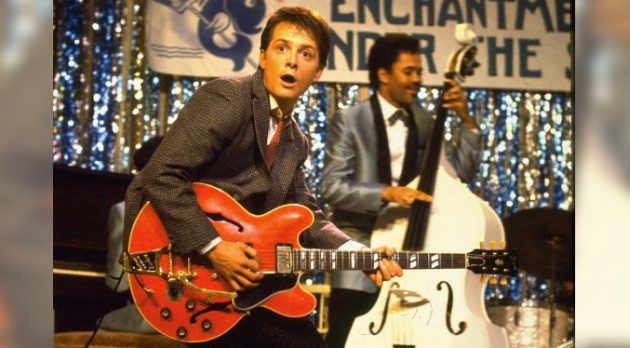 Marty McFly tomó una guitarra en “Back to the Future”, brilló sobre el escenario durante el baile escolar de 1955 —lo que ayudó a que sus padres se enamoraran y eventualmente él pudiera nacer— y luego volvió de regreso a 1985.