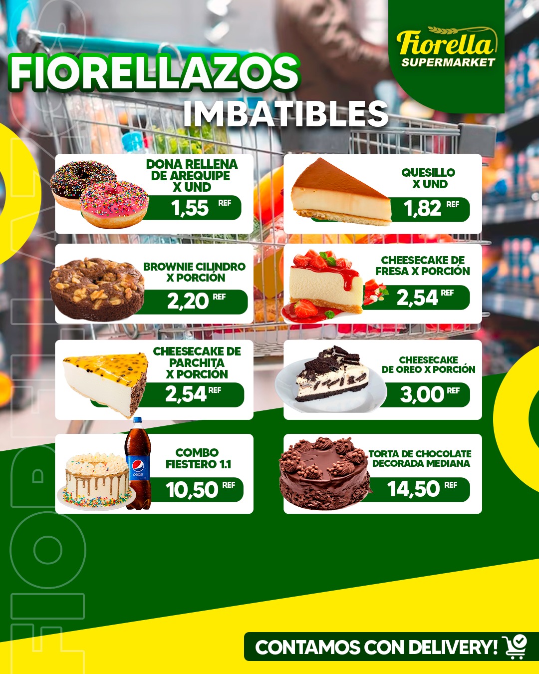 Las más extensas listas de ofertas la encontrarán en: farmacia, feria del campo, charcutería, panadería, pastelería, carnicería, cosméticos, hogar, juguetería, jardinería, restaurante, pizzería, bodegón, congelados, productos importados, entre otros, a excelentes precios y cuyos detalles son ampliados en la cuenta de Instagram: @fiorellasupermarkets.
