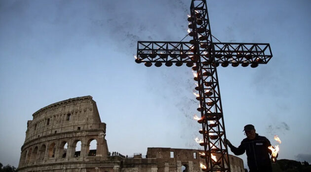 Francisco, de este modo, aunque ausente, se hizo presente ante los miles de fieles que, con velas, asistieron al vía crucis en el Coliseo, símbolo de la persecución de los primeros cristianos.