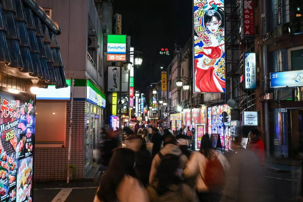 Con la cara iluminada por la fría luz de sus celulares, las mujeres que bordean el parque Okubo son una prueba de que el turismo sexual se ha desarrollado como una suerte de lado oscuro de la agitada vida nocturna del distrito de Kabukicho.