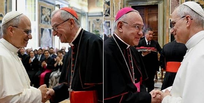 Entre los presentes se encontraban el cardenal Pietro Parolin, secretario de Estado de la Santa Sede, quien introdujo el encuentro con un breve discurso. También participó monseñor Edgar Peña Parra, sustituto de la Secretaría de Estado, detalla Aci Prensa.