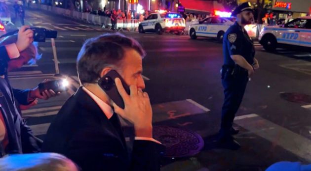 El presidente de Francia, Emmanuel Macron, al margen de las reuniones de las Naciones Unidas, se encontró en una situación muy «neoyorquina»: atrapado en la acera, ya que la calle estaba bloqueada por la comitiva del presidente de EEUU, Donald Trump.