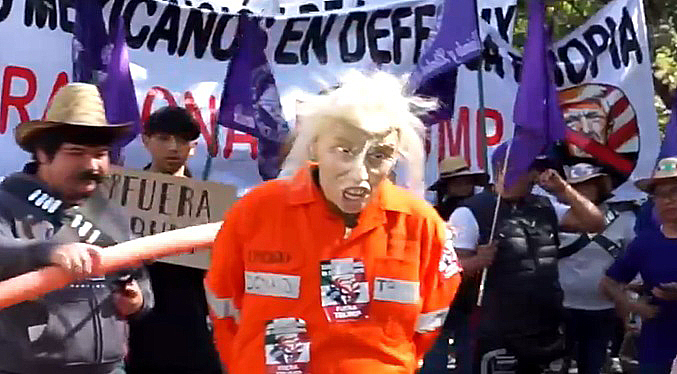 «Nosotros trajimos a Trump porque es algo simbólico el ponerlo de rodillas, de hacerle un juicio por todas las masacres e intervenciones económicas que está haciendo a todo el mundo, pero principalmente a América Latina», explicó a EFE Yed Miguel, quien forma parte de la asociación Convención Ciudad de México.