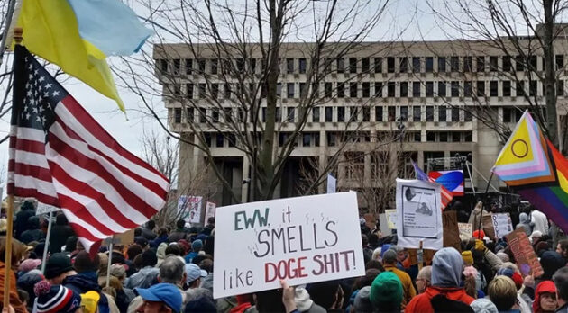La protesta, dirigida especialmente contra Trump y su mano derecha, el magnate Elon Musk, ideólogo del recorte masivo del Gobierno, fue la primera gran manifestación desde que el líder republicano regresó a la Casa Blanca el 20 de enero.