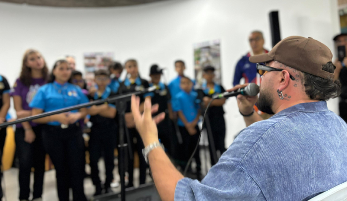 Cáceres compartió con los jóvenes su inspiradora trayectoria: desde sus inicios en Maracaibo hasta el despegue de su carrera en Estados Unidos, donde se consolidó como uno de los compositores más influyentes de la última década. Les relató cómo la disciplina y la perseverancia lo llevaron a ser el nombre detrás de hits que suman miles de millones de reproducciones.