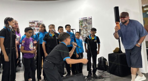Cáceres, quien regresó a Venezuela tras una década de ausencia, compartió una velada mágica y motivacional con niños y jóvenes promesas de la gaita. El artista, galardonado con múltiples premios por temas como “Vacaciones” (Wisin), “Felices los 4” (Maluma) y “Mayores” (Becky G), fue recibido con una emocionante serenata gaitera.