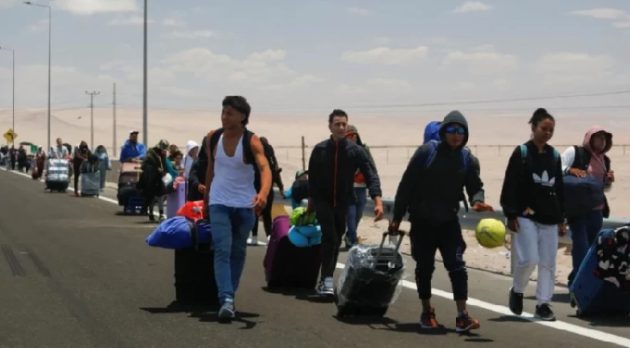 Bajo un sol abrasador y con poca comida, decenas de migrantes indocumentados en Chile se agolpan frente a la desértica frontera con Perú, que les cerró el paso cuando intentaban salir del territorio chileno ante la amenaza de deportaciones masivas.