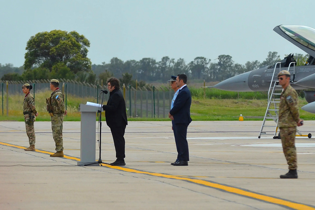 «Después de una ansiosa espera, tengo finalmente atrás mío los primeros seis aviones de combate de F-16. Con esta importante inversión en armamento militar vamos a robustecer sustancialmente nuestra fuerza aérea», dijo Milei después de que los aviones aterrizaran en sus asignadas en el Área Material de Río Cuarto, en la provincia de Córdoba.