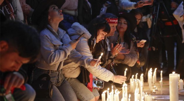 Frente a la pantalla, los asistentes, con sombrero y poncho colombianos, y portando globos y ramos de flores blancas, se organizaron en semicírculo y corearon sus canciones más conocidas mientras caía el sol en Bogotá, en un ambiente que pasó del recogimiento a la celebración de su legado.